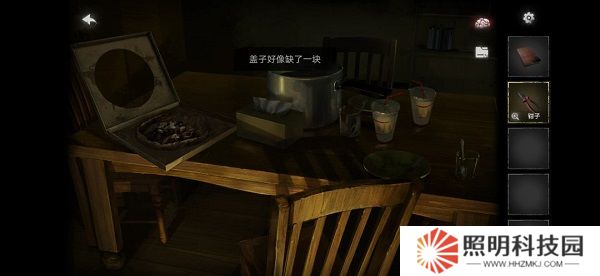 11、來到餐桌獲得打火機(jī),這里還有少了塊的披薩盒(注意)。