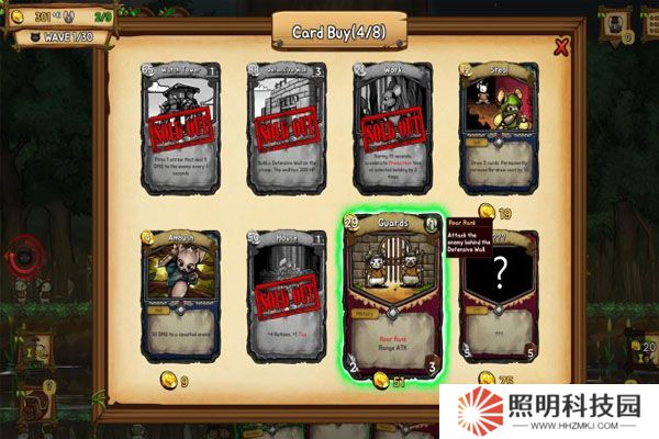 3、以卡牌防守為主,其中擁有很多種卡,包括120多張不同特性的游戲卡片,帶來(lái)豐富的策略空間。