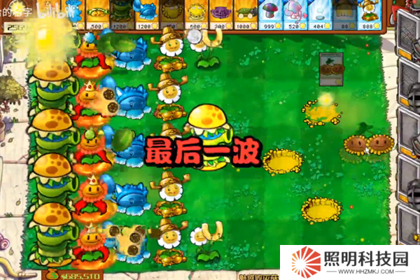 3、通過對(duì)每一行的植物都進(jìn)行種植,你將能夠來到最后一波。