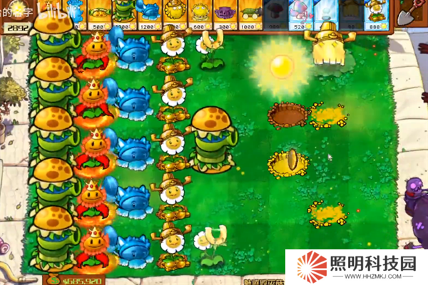 2、在僵尸出現(xiàn)之前,要在場(chǎng)地上種植出漢堡射手、向日葵女王、冰瓜香蒲、至尊VIP堅(jiān)果以及寶藏吞噬者,然后就能夠掛機(jī)度過前期。