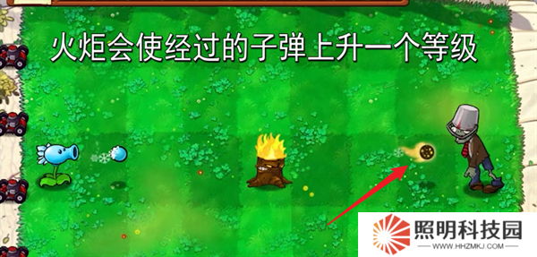 4、火炬樹樁則會將冰豌豆升級為冰火豌豆,可以同時減速以及灼燒僵尸。