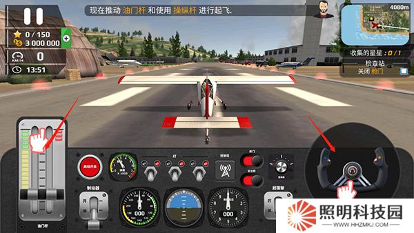 2、緩慢推動(dòng)油門(mén)桿,逐漸增加動(dòng)力,同時(shí)輕穩(wěn)地使用操縱桿來(lái)控制飛機(jī)的起飛姿態(tài)。