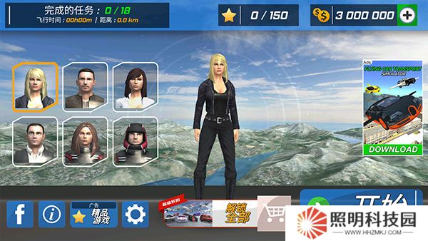 3、點(diǎn)擊主界面中的“開(kāi)始”按鈕,有機(jī)會(huì)接取各種飛行任務(wù),通過(guò)成功完成任務(wù)來(lái)賺取豐厚的金幣獎(jiǎng)勵(lì)。