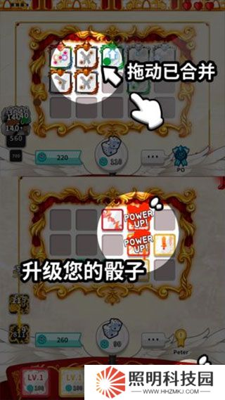 2、不同的骰子攻擊方式也不一樣,你能夠通過(guò)合成的方式來(lái)提升骰子的等級(jí),升級(jí)它們的火力。