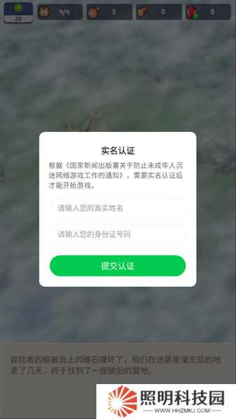 1、玩家們在本站下載游戲之后,首先打開荒島幸存者游戲,進入游戲要實名認(rèn)證。