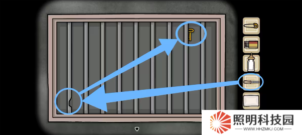 3、用銼刀割斷下水道的鐵桿,再用其撥動并拿到鑰匙。
