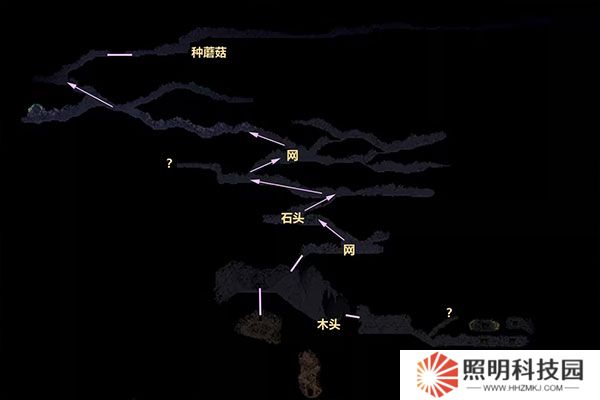 2、玩家們需要向上探索黑暗的礦洞,鋤頭挖通路后是一個(gè)上不去的高臺(tái),在之前那個(gè)紫色綠色蘑菇長在一起的蘑菇洞,找空地將兩種蘑菇相鄰會(huì)種出一朵大蘑菇。