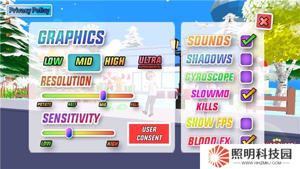 2、啟動(dòng)游戲后,通過(guò)點(diǎn)擊屏幕右下角的“設(shè)置”圖標(biāo),對(duì)游戲的圖形質(zhì)量、靈敏度、慢動(dòng)作效果、陰影等選項(xiàng)進(jìn)行調(diào)整。