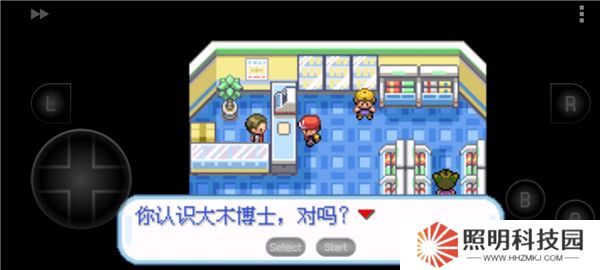 3、首先下樓和媽媽對話,然后出門直奔上面的草叢,在快進入草叢時,大木博士出現(xiàn)了,把主角帶到他的研究所,然后讓我們從右邊的桌上的精靈球中選擇一個作為初始的怪獸。