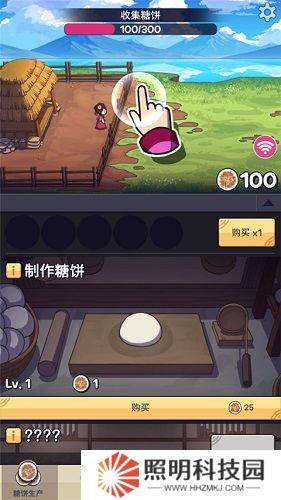 2、點擊面團輕松制作糖餅,完成挑戰(zhàn):制作100個糖餅。