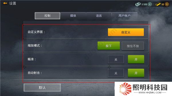 4.在“控制”中可以對(duì)界面、縮放模式、瞄準(zhǔn)、射擊等進(jìn)行設(shè)置。