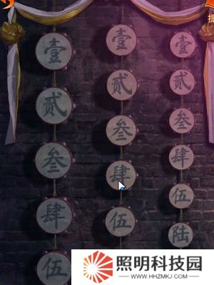 10、然后回到算命的八不郎場景,點擊墻上的擺布,按照左5右5右2中4右7中2的順序敲響皮革,獲得銅子塊和花錢。