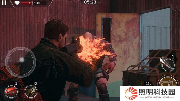 5.可使用槍械進(jìn)攻場景中的炸藥桶,造成范圍性傷害擊潰喪尸群。