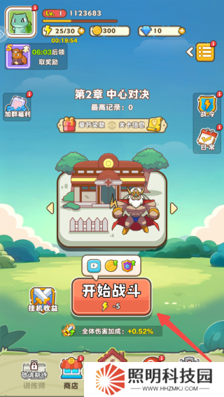 1、下載安裝運(yùn)行進(jìn)入到游戲內(nèi)后點(diǎn)擊開始游戲消耗體力進(jìn)入。