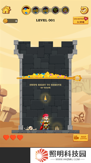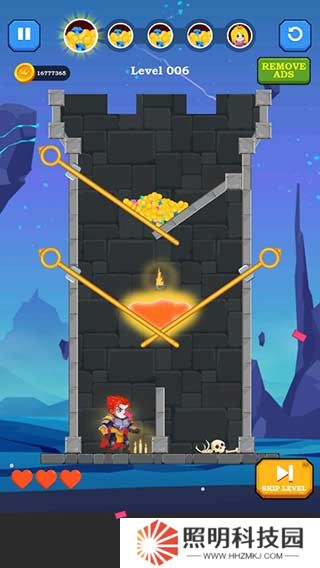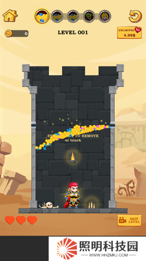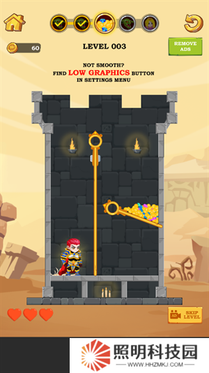 2、英雄每一個(gè)關(guān)卡都被困住,我們要想盡一切的辦法去幫助英雄跑出來才能通關(guān)。