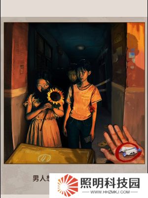 8.詭異的事情分別有地上的紙錢、詭異微笑的影子,還有男人手中的金元寶紙錢,找出所有詭異的事情即可通關(guān)。