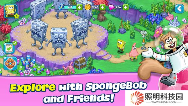 4、愛好者們消耗物資對海綿寶寶進行升級打造,使其提高等級解鎖出更多的技能玩法。