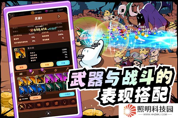 2、玩家們還可以為其穿戴上各種各式各樣的武器裝備,解鎖全新攻擊方式的同時增加了戰(zhàn)斗能力。