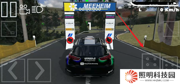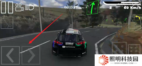 2、當(dāng)遇到轉(zhuǎn)彎路口的時候,還要通過左下角的方向鍵來調(diào)整自己的車輛方向。