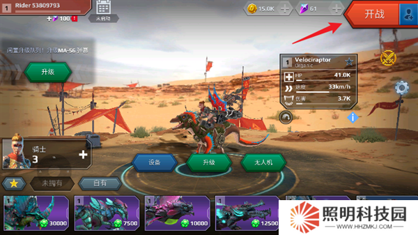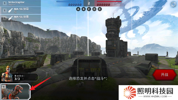 2、進(jìn)入到場景內(nèi)后玩家們選擇恐龍并點(diǎn)擊右下角的開戰(zhàn)進(jìn)入對戰(zhàn)。