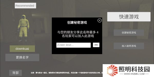 6.讓自己的好友在游戲界面點(diǎn)擊右下角的【加入秘密游戲】,輸入相同的房間名稱即可加入房間一同進(jìn)行游玩。