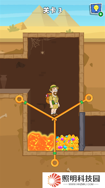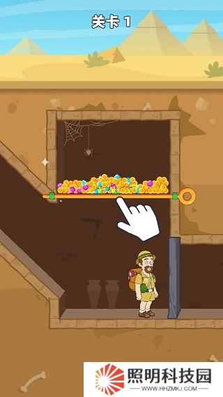 3、游戲采用簡單有趣的Q版風(fēng)格,游戲玩法非常有趣,通關(guān)順序,抽出棍棒,以幫助獵人安全到達(dá)寶藏。