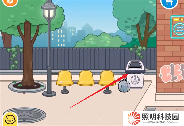 4、注意在讓角色吃東西之后,需要將*扔到商業(yè)街盡頭的*桶里面。