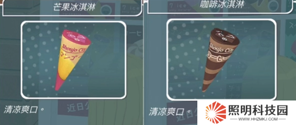 冰淇淋買芒果冰淇淋和咖啡冰淇淋。