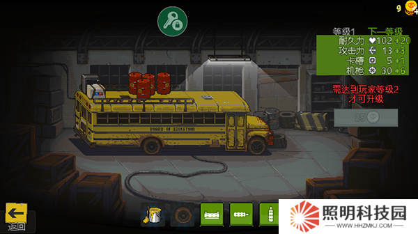 4、消耗物資對(duì)大巴進(jìn)行升級(jí)打造,能夠提高戰(zhàn)斗能力解鎖更多的兵種。
