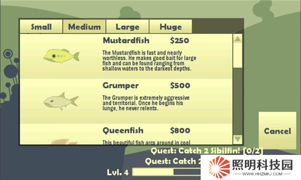 2、游戲中的魚類種類繁多,包括鯉魚、鱸魚、鯊魚等,每種魚都有自己的特性和習(xí)性,非常的有趣。