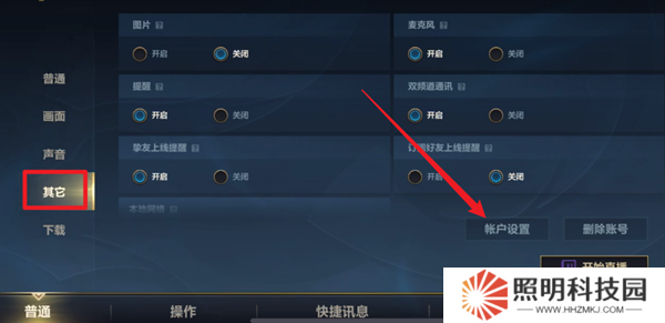 2、在設(shè)置界面里面選擇【其他】選項(xiàng),然后點(diǎn)擊右下角的賬戶設(shè)置按鈕。