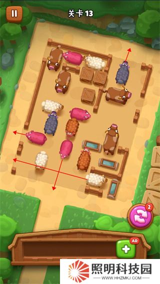 1.主要的玩法就是通過點擊來讓農場內部的各種動物們都走出區(qū)域,由此帶來趣味十足的消除冒險。