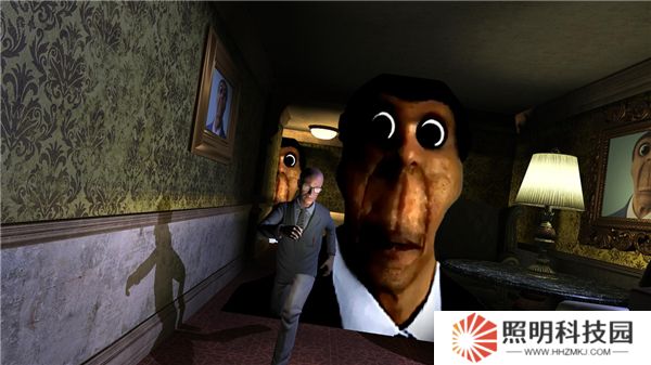 6、如果不小心被抓住則將被淘汰,在這里我們要做的就是使用場景中的各種物品進(jìn)行躲避,途中遇到奧巴嘎請趕快逃離,一但被逮住直接游戲結(jié)束。