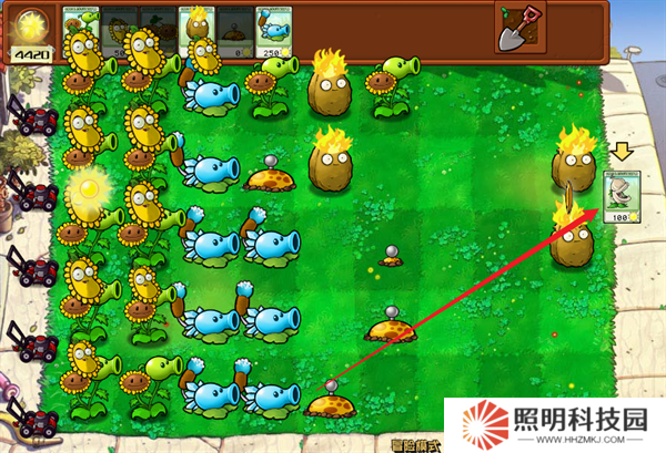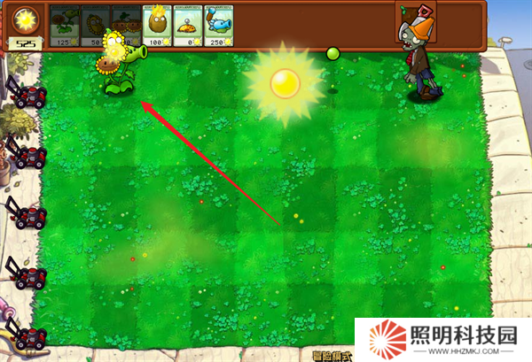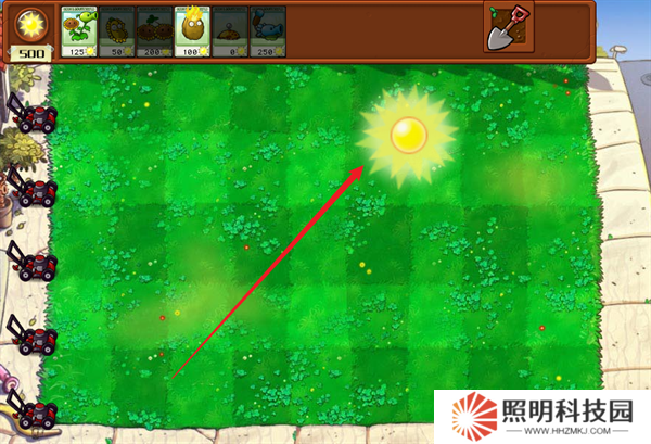 8、關(guān)卡內(nèi)部會掉落陽光,拾取之后就能夠消耗陽關(guān)來進(jìn)行植物的種植。
