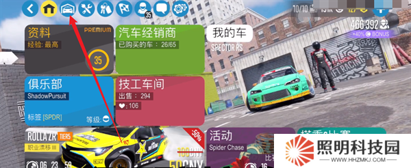 1、玩家們進(jìn)入游戲之后,首先需要點(diǎn)擊主界面上方的第二個(gè)按鈕,進(jìn)入到自己的車庫當(dāng)中。