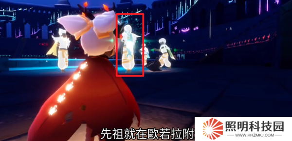 1、玩家們需要操控自己的角色前往歐若拉附近,就能夠在其中找到本次復(fù)刻的先祖了,先祖后面的斗篷是藍(lán)色的。
