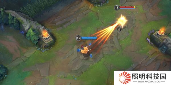 扔出一顆手雷,對目標區(qū)域造成85魔法傷害和持續(xù)2秒的35%減速效果,位于區(qū)域中心的敵人將暈眩1秒。,命中敵方英雄將使附近的炮臺完全充能。