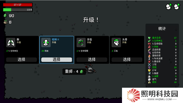 4、擊殺怪物能夠獲取到一定的經(jīng)驗(yàn)值,左上角綠色的經(jīng)驗(yàn)條滿了之后就會(huì)升級(jí),你可以從多種隨機(jī)的能力當(dāng)中挑選一種進(jìn)行提升。