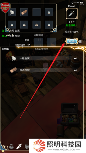 4、然后你會以小鐵匠的身份來進(jìn)行自己的冒險,在正式出門之前可以使用工作臺來進(jìn)行鍛造。