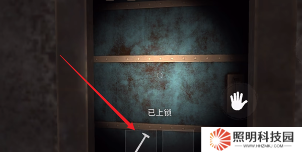 2、然后順著道具繼續(xù)往前走,使用手中的錘子打開門。