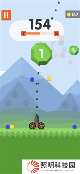 1.在關(guān)卡之中控制火炮的位置來對掉落的石頭進行射擊,擊碎越多的石頭所能夠獲取到的分數(shù)也越多。