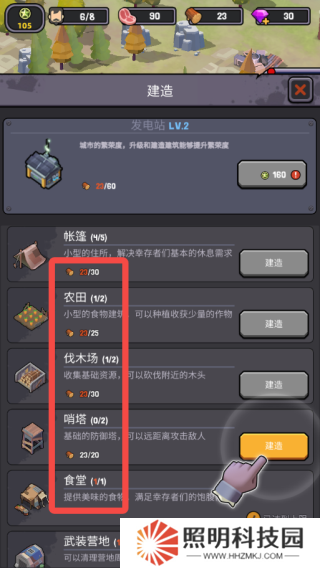 2、玩家們在彈出的界面中選擇需要建造的建筑物。