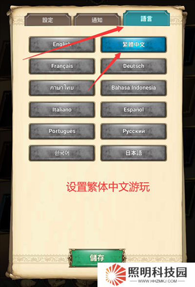 4、玩家們點擊上方最右側(cè)的選項,在界面中選擇中文既可。