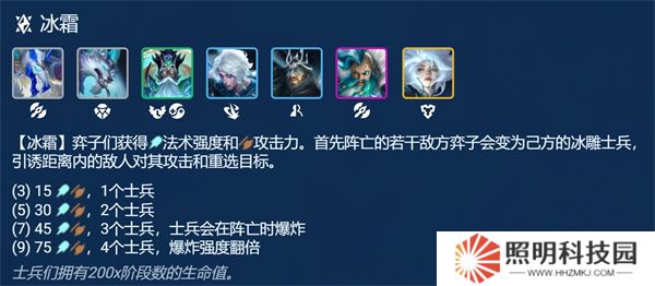 陣容開3冰霜,不僅能給彗增加15雙攻,每次戰(zhàn)斗敵方第一個被擊殺得棋子還能變?yōu)槲曳降谋獞?zhàn)士,提升陣容的前排坦度。