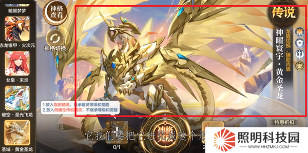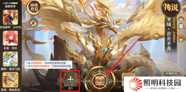6、將自己的精靈放置到其中,消耗一定的材料,點(diǎn)擊中間的神格突破就能夠完成神曜進(jìn)化。