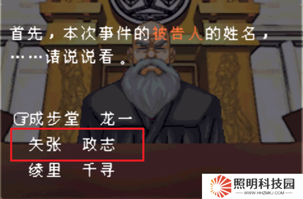 5、開(kāi)始問(wèn)話之后就要選擇正確的答案,本次事件的被告人姓名選擇【矢張政志】。