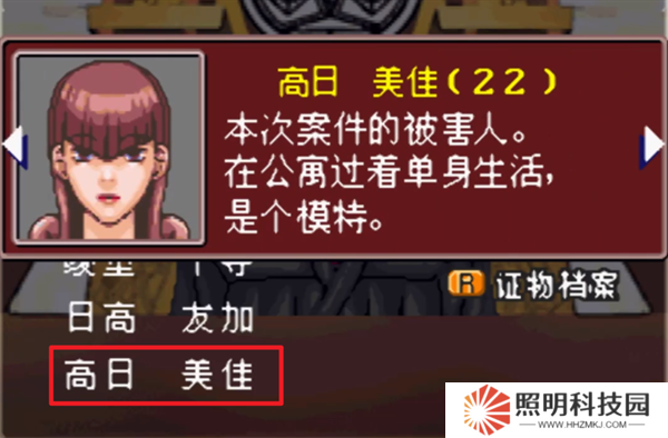 6、被害者的姓名可以通過(guò)按R打開(kāi)證物檔案進(jìn)行查看,選擇【高日美佳】。