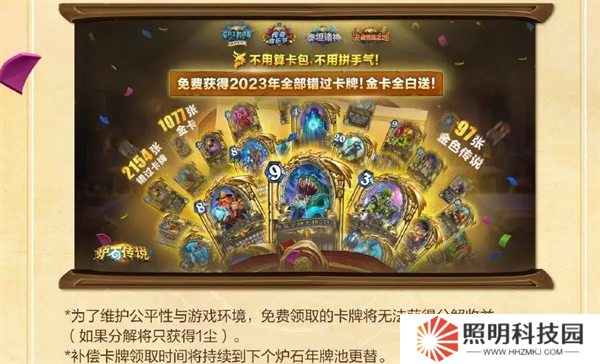 只要在9月25日登錄《爐石傳說(shuō)》,所有國(guó)服玩家(包括新注冊(cè)玩家)即可免費(fèi)獲贈(zèng)獨(dú)狼年標(biāo)準(zhǔn)模式錯(cuò)過(guò)的所有普通和金色卡牌,共計(jì)2154張卡牌,包括全部97張金色傳說(shuō)!