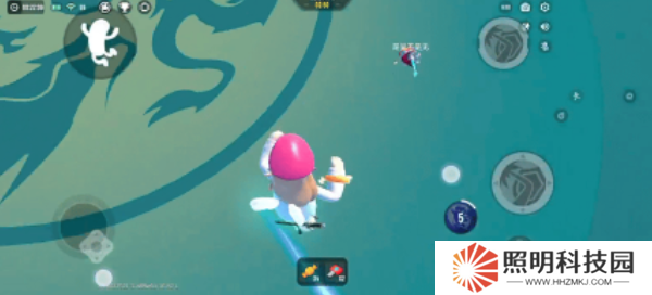 4、離開巴士在空中飛行的時候,我們可以按住并拖動「觀察按鈕」觀察其他玩家動向,從而調(diào)整己方落點。