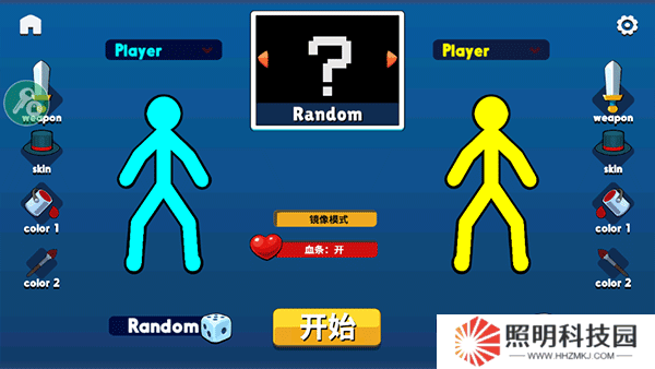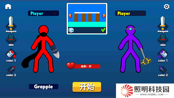 3、以雙人模式為例,自由選擇地圖,左右兩側(cè)則可以自定義火柴人。